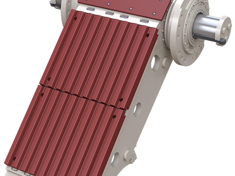 6、實現(xiàn)快速調(diào)整排料口,無論是液壓式還是機械式均可從兩側(cè)通過楔塊調(diào)整;
